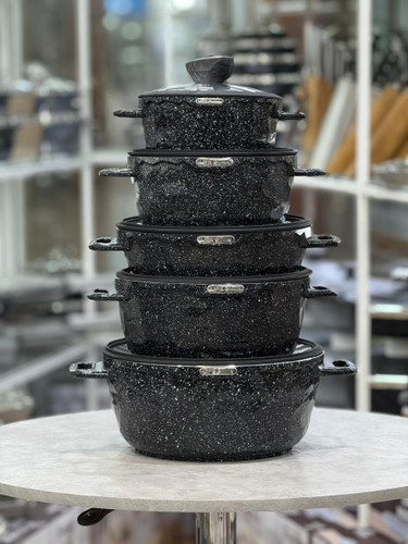 سرویس قابلمه گرانیتی لایف اسمایل 10 پارچه طرح سنگ مدلST10