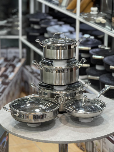 سرویس قابلمه استیل جدید۱۰پارچه درب سیلیکونی لایف اسمایل