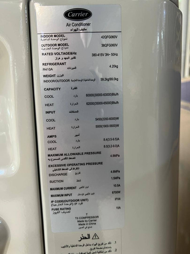 یعنی اگر برق سهفاز دارید و دستگاه بهدرستی نصب شده، در حالت عادی حدود ۸ تا ۸.۵ آمپر در هر فاز مصرف دارد، و در شرایط حداکثری ممکن است تا ۱۰.۵ آمپر هم برسد