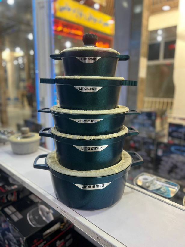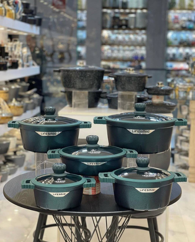 همچنین در برابر خش مقاوم است. سرویس قابلمه لایف اسمایل سرویس فول آپشن و کامل 20 پارچه میباشد. به طور کلی شامل 4 قابلمه و 1 تابه و 5 جفت دستگیره سیلیکونی است. رنگ بندی ویژگی عالی دیگر آن بوده و میتوانید این سرویس قابلمه را در رنگ مشکی شاین و سبز شاین زیبایی که دارد مشاهده کنید و اقدام به خرید نمایید.