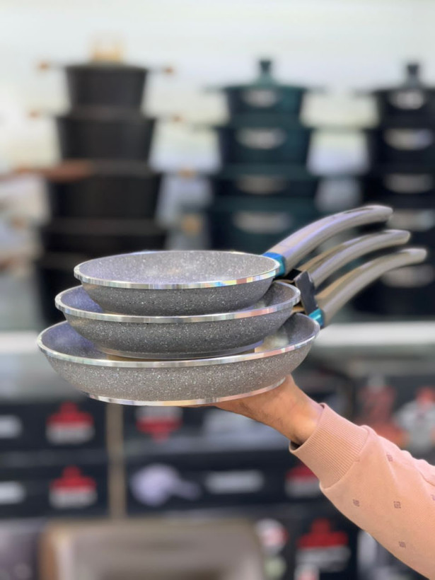 پک سه عددی ماهیتابه لایف اسمایل اصل، انتخابی عالی برای آشپزخانههای مدرن است. این مجموعه شامل سه سایز مختلف از ماهیتابههای دستهدار با پوشش گرانیتی نچسب میباشد که برای پختوپز روزانه، سرخکردن، تفتدادن و گرمکردن انواع غذاها طراحی شدهاند. بدنهی مقاوم آلومینیومی، توزیع یکنواخت حرارت را تضمین کرده و پوشش داخلی گرانیتی، باعث کاهش مصرف روغن و سهولت در شستوشو میشود. طراحی ارگونومیک دستهها، کار با این تابهها را راحت و ایمن میسازد.