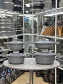 سرویس قابلمههای آشپزخانه : عمق و عرض متعادل برای طیف وسیعی از دستورهای غذایی. طراحی شده برای استفاده در فر: کل قابلمه را به همراه درب آن مستقیماً داخل فر قرار دهید. درب ضد رطوبت: با جریان بخار متعادل، غذا را گرمتر و آبدارتر نگه میدارد. کف القایی : گرمایش سریع و یکنواخت را برای پخت و پز با مصرف بهینه انرژی تضمین میکند. نمای شیک : ظاهری شیک و مدرن که با هر دکوراسیون آشپزخانهای هماهنگ میشود. اندازههای مختلف : شامل قابلمههایی با اندازههای مختلف برای هر ظرف. نچسب و تمیز کردن آسان : به روغن کمتری نیاز دارد و به راحتی با دستمال تمیز میشود. درب آلومینیومی : طراحی سبک با دستگیره استیل ضد زنگ برای گرفتن محکم و کنترل بخار ایمن. ۱۰۰٪ بدون PFOA