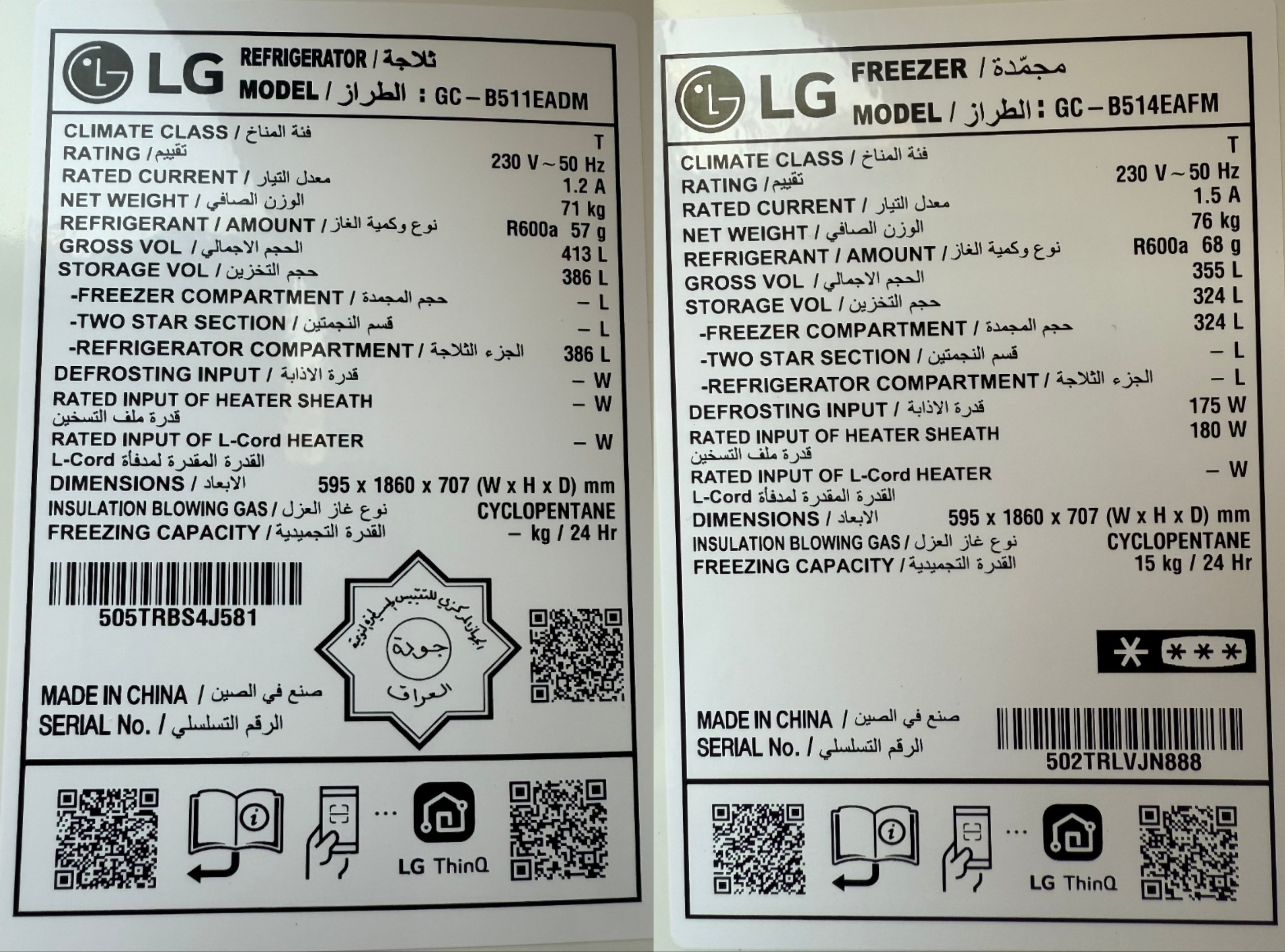 یخچال فریزر دو قلوی ال جی GC-F511ELDM/GC-B514ELFM 2025 دارای اندازه های استاندارد میباشد که میزان حجم بارگیری 40 فوتی 690 لیتری را خواهید داشت که این ابعاد شامل ارتفاع 186 سانتیمتر و عرض 119 سانتیمتر و عمق 70.7 سانتیمتر میتواند در کابینت کاری شما قرار بگیرد و اشپزخانه شما را در اراستگی کامل و زیبایی کامل نمایان سازد و همچنین شما دارای باکس بزرگ هستید که در خدمت شما در 24 ساعت شبانه روز خدمات سردی و خنکی و بهداشتی را ارایه میدهد . ساخت این دوقلو الجی در سال 2025 منتاژ شده متور قوری بی صدا اینوتردار وارد بازار شده.