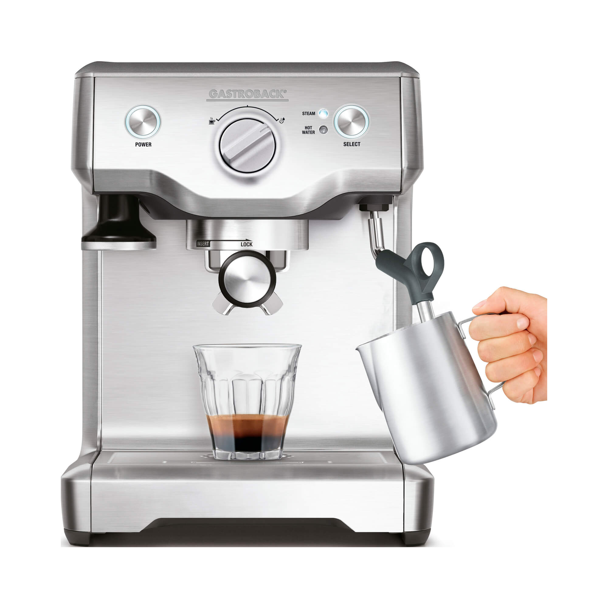 اسپرسو ساز گاستروبک 42609S : این دستگاه دارای توان ۱۷۰۰ وات و ظرفیت ۲.۲ لیتری است. و وجه تمایز آن نسبت به دستگاه های دیگر کنترل کننده PID الکترونیکی است که دقیقا دما را کنترل می کند و عملکرد یکپارچه آب گرم برای CAFÉ AMERICANO است و تمام استیل بودن دستگاه است.
