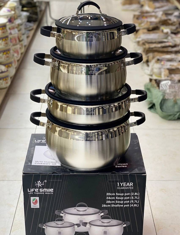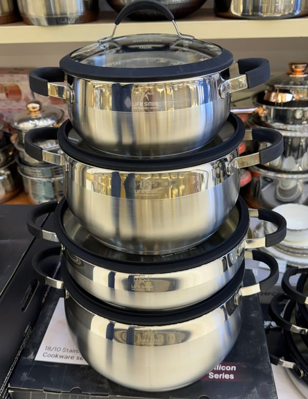 سرویس قابلمه استیل 8 پارچه جدید با دسته سیلیکونی لایف اسمایل
