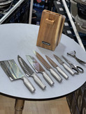 مزایا احتمالی و نکات مثبت تنوع قطعات زیاد: شامل ابزار متفاوت برای کاربردهای مختلف در آشپزخانه است (پوستکن، قیچی، چاقوهای متعدد) تیغههای استیل ضدزنگ با کربن بالا معمولاً مقاومت خوبی در برابر زنگزدگی و خوردگی دارند، اگر کیفیت ساخت خوب باشد پایه چوبی میتواند به زیبایی و نظم آشپزخانه کمک کند و دسترسی به چاقوها را آسانتر کند وجود تیزکن همراه ست باعث میشود همیشه بتوان تیغهها را شارپ نگه داشت