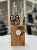 پایه نگهدارنده: دارای پایه چوبی برای نگهداری چاقوها به طور مرتب متعلقات همراه: چاقوی آشپزخانه چاقوهای برش چاقوی پوستکن قیچی ساطور تیزکن پایه نگهدارنده چوبی