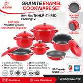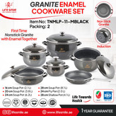 سرویس قابلمه 11تیکه لعابی گرانیتی لایف اسمایل مدلTNMLP_11_MBLACK