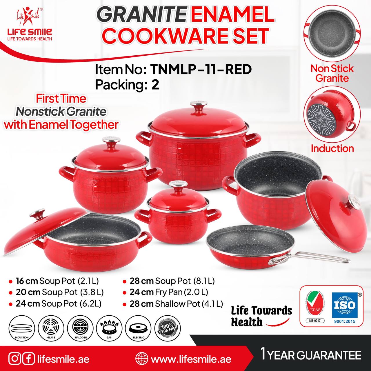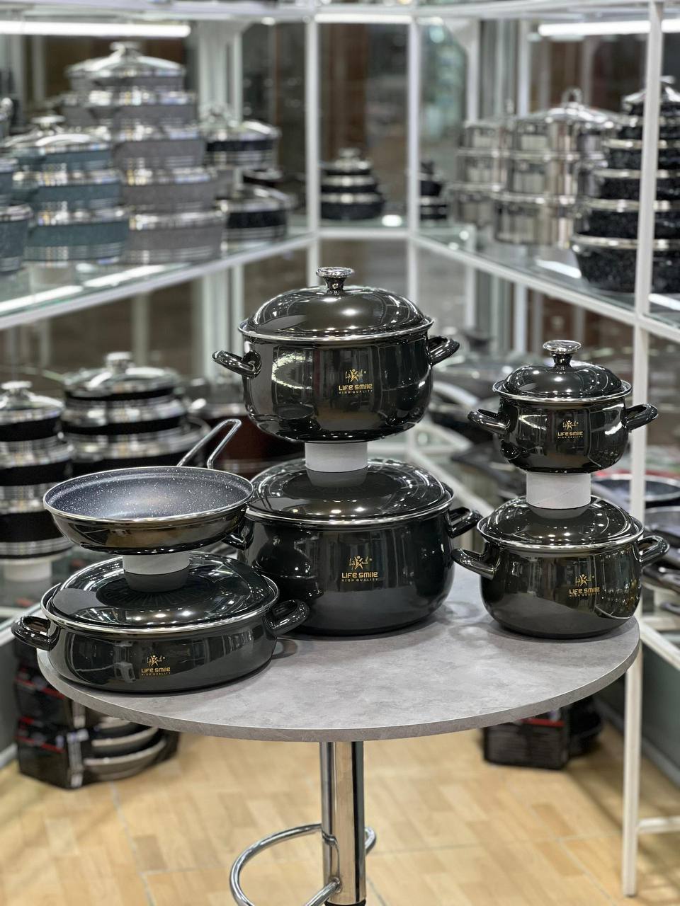سرویس قابلمه 11تیکه لعابی گرانیتی لایف اسمایل مدلTNMLP_11_MBLACK