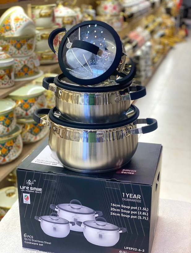 سرویس قابلمه استیل 6پارچه سیلیکونی لایف اسمایل