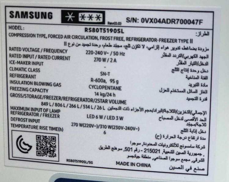 ظرفیت یخچال ساید آر اس 80