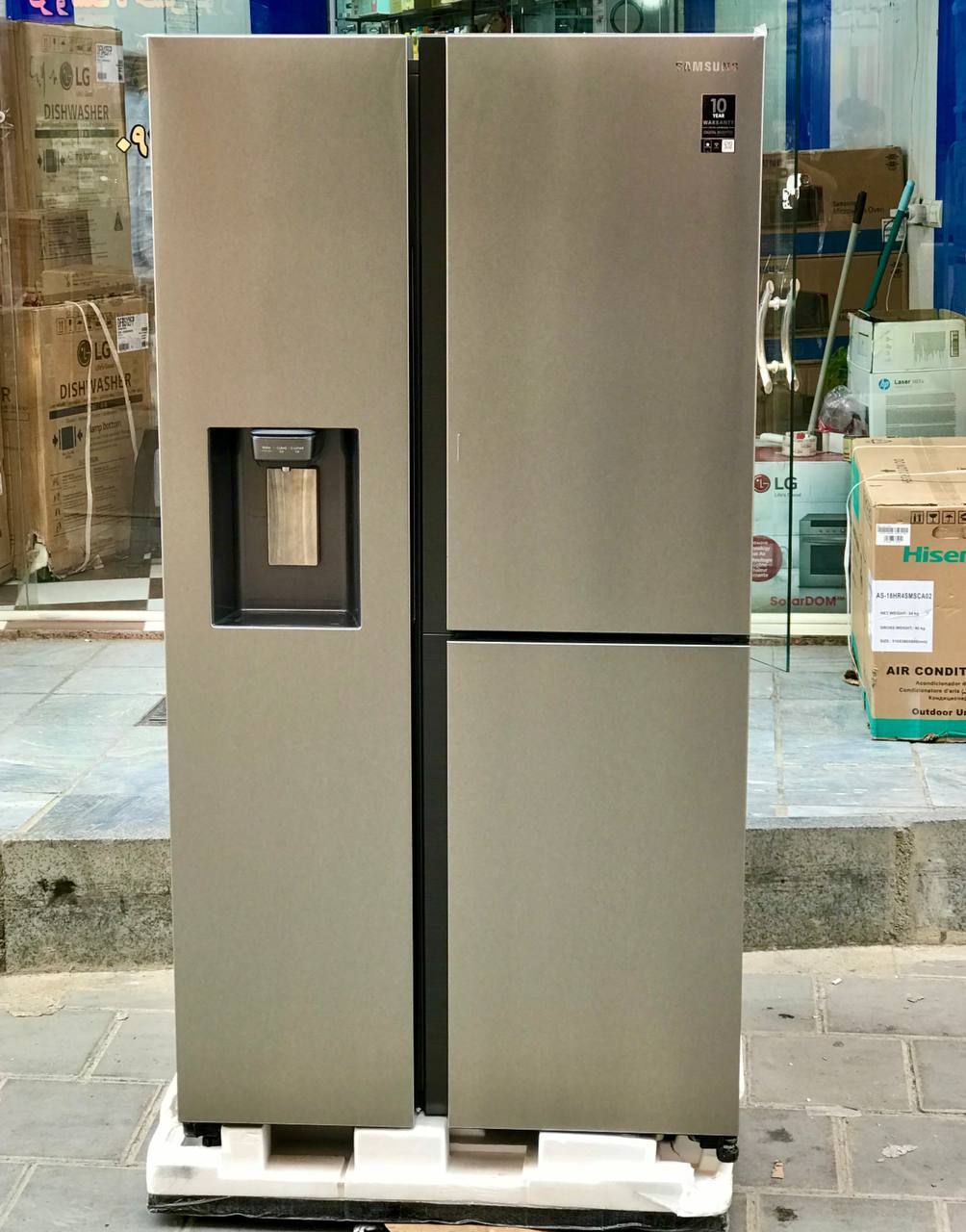 از دلایل تاثیرگذار بر روی قیمت یخچال ساید سامسونگ RS80 در بانه، ظرفیت بالای این محصول است یعنی این ساید در دسته سایدهای 34 فوت قرار میگیرد و این امتیاز مهمی برای ساید بای ساید به شمار میرود. محصولات 34 فوت معمولا جزو محبوبترین محصولات به شمار میروند و هم انتخاب زوجهای جوان و تازه عروس و دامادها هستند و هم انتخاب خانوادههای عیال وار. ظرفیت 34 فوت این ساید بای ساید 3 درب به صورت 806 لیتر هم تعریف میشود که ظرفیت خالص این دستگاه به شمار میرود. ظرفیت خالص این ساید دور این دور سامسونگ کاملا برای جای دادن حجم وسیعی از مواد غذایی در نظر گرفته شده و این موضوع کاملا از عمق طبقات و کشوها و همچنین تعداد طبقات مشخص است.
