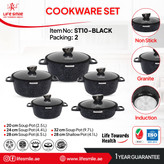 سرویس قابلمه گرانیتی لایف اسمایل 10 پارچه طرح سنگ مدلST10