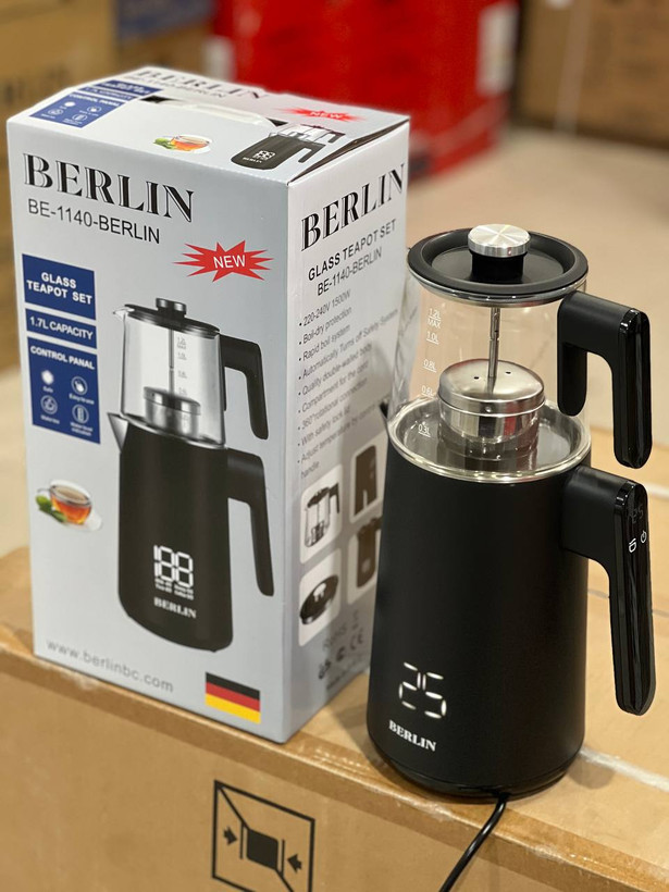 این مدل از برند معتبر Berlin با ترکیب کتری برقی و قوری پیرکس، تجربهای راحت و دلپذیر از دمکردن چای فراهم میکند. طراحی آن بهصورت روهمی (کتری و قوری روی هم) باعث صرفهجویی در فضا و حفظ بهتر دمای چای میشود. بدنه استیل ضدزنگ، مقاومت بالایی در برابر حرارت و رطوبت دارد و ظاهر براق آن جلوهای لوکس به آشپزخانه میبخشد