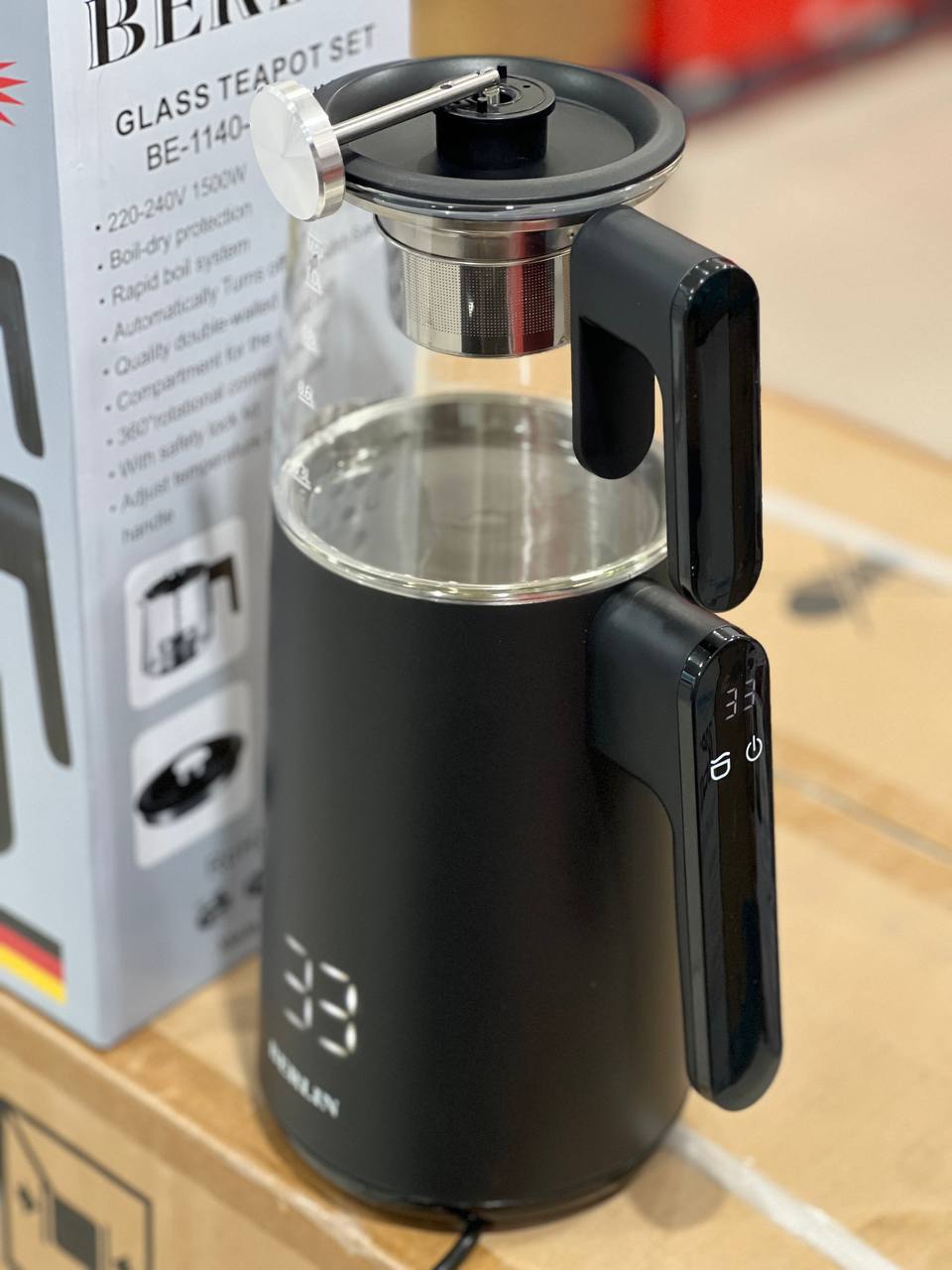 این مدل از برند معتبر Berlin با ترکیب کتری برقی و قوری پیرکس، تجربهای راحت و دلپذیر از دمکردن چای فراهم میکند. طراحی آن بهصورت روهمی (کتری و قوری روی هم) باعث صرفهجویی در فضا و حفظ بهتر دمای چای میشود. بدنه استیل ضدزنگ، مقاومت بالایی در برابر حرارت و رطوبت دارد و ظاهر براق آن جلوهای لوکس به آشپزخانه میبخشد